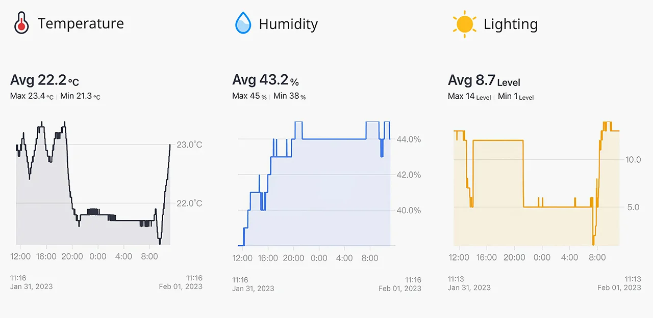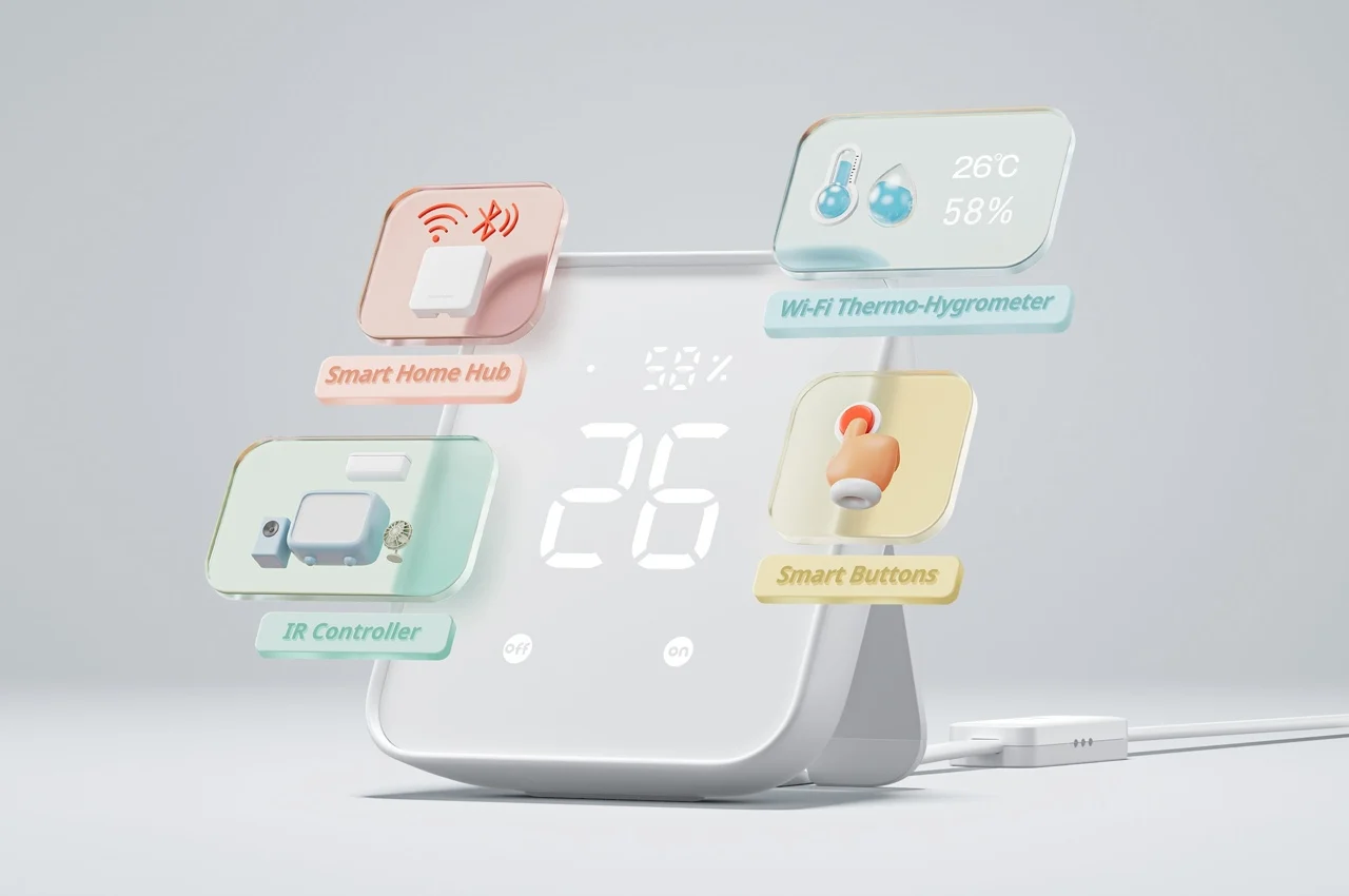 SwitchBot Hub 2는 온도 및 습도 변화를 실시간으로 모니터링할 수 있도록 온습도계 센서를 갖춘 최초의 Matter 지원 허브입니다.